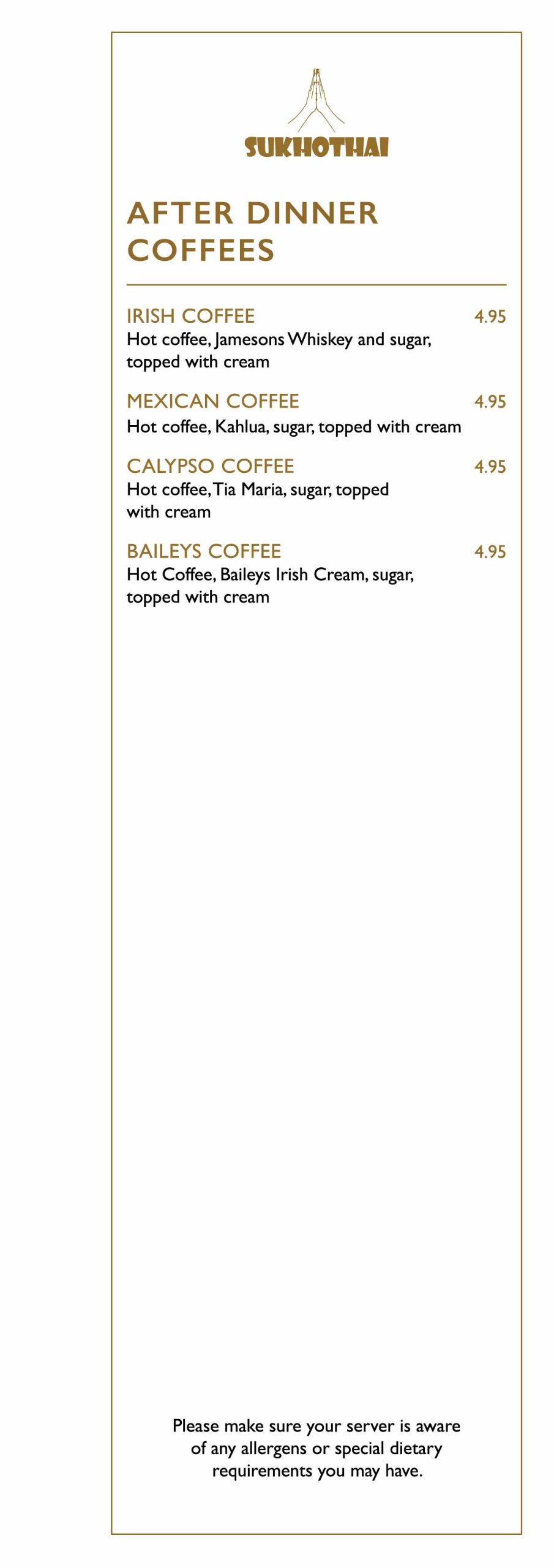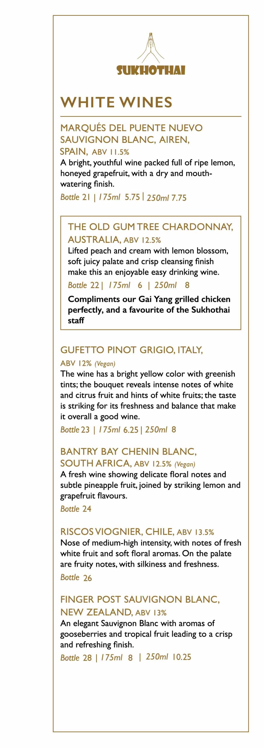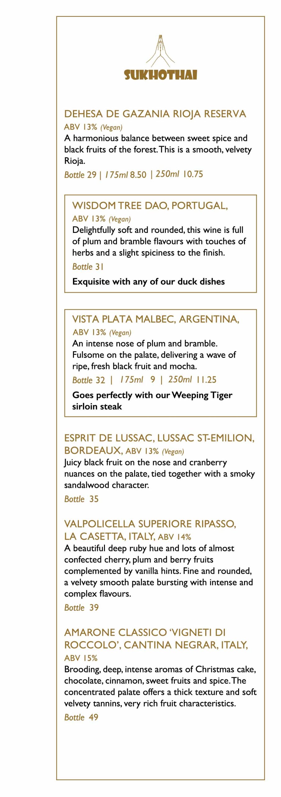 Explore many Sukhothai favourites, including authentic Thai starters, salads, soups, main courses, sides & desserts, vegetarian & halal options will be available.